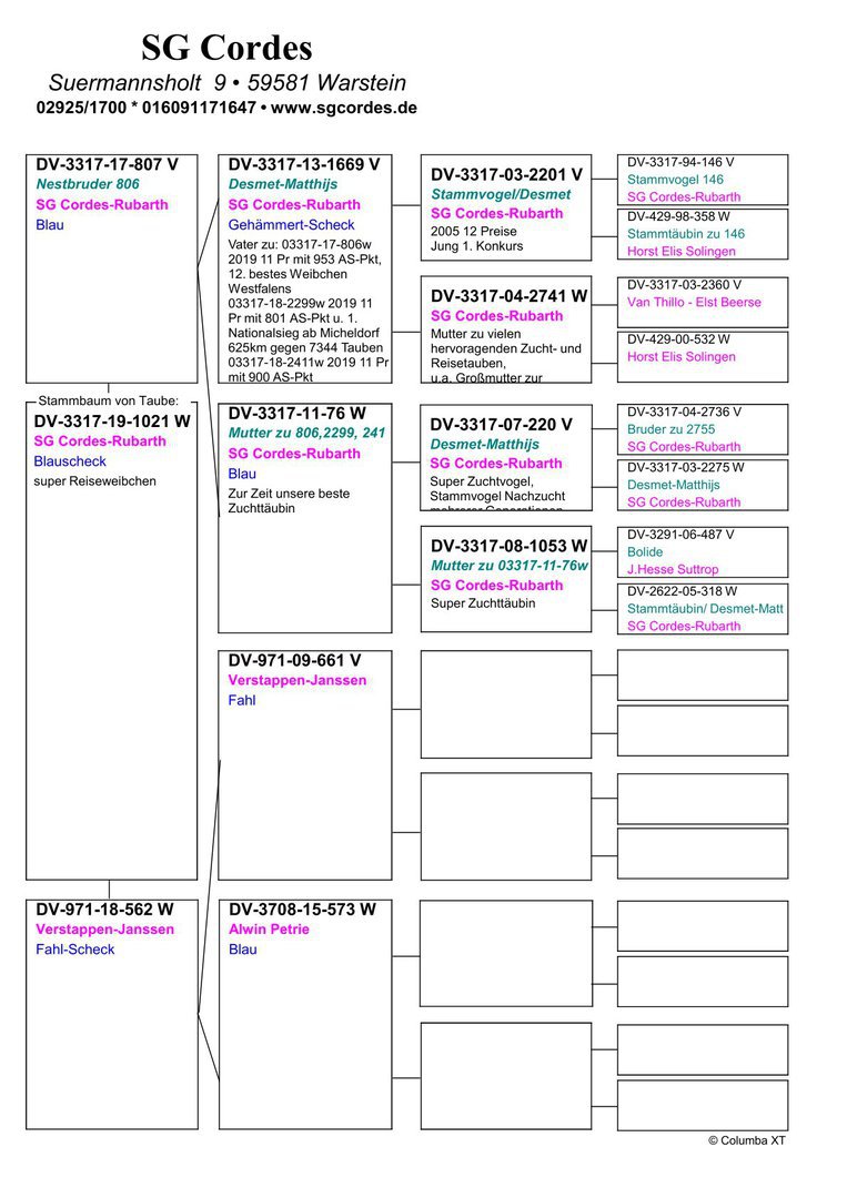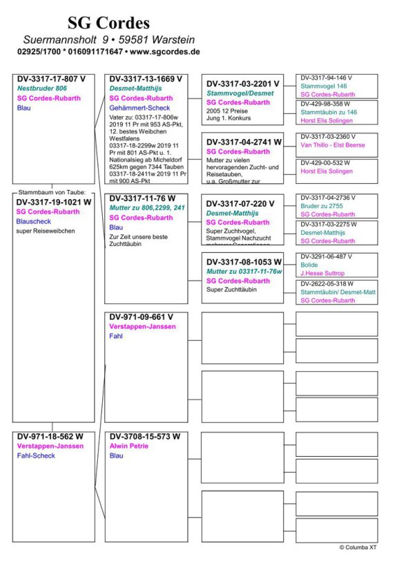 - 2023 von 6/5 Preise, danach auf Weitstrecke gesetzt und dort 2 Preise geflogen (33. Konkurs auf Wegscheid 500km, 26. Konkurs auf Nickelsdorf 734km)