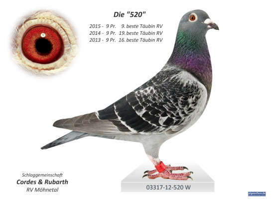 Am letzten Preisflug der Alttierreise 2017 fliegt unsere "520" ihren 50. Konkurs und schafft es zum ersten Mal zweistellig zu fliegen. Sie hat in den letzten Jahren viele Spitzenpreise geflogen, besonders auf den langen anspruchsvollen Flügen. Sie hat in ihrer Laufbahn 5 Preise unter den ersten 10 geflogen.