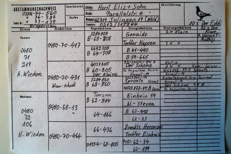 Der "Eddi" (von Houben & Sohn) war ein Stammvogel von Horst Elis.