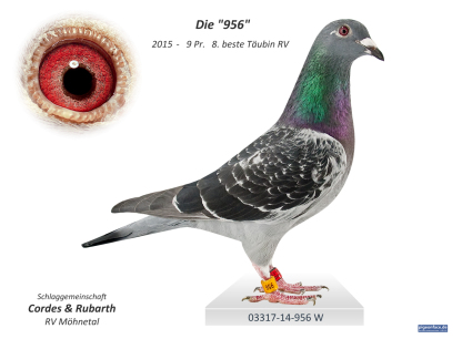 Unsere "956" wird in diesem Jahr RV-beste Täubin mit 12 Preisen, 650,08As-Punkten und 4247km. 2015 wurde sie bereits RV-beste jährige Täubin und fliegt 2016 10 Preise.
