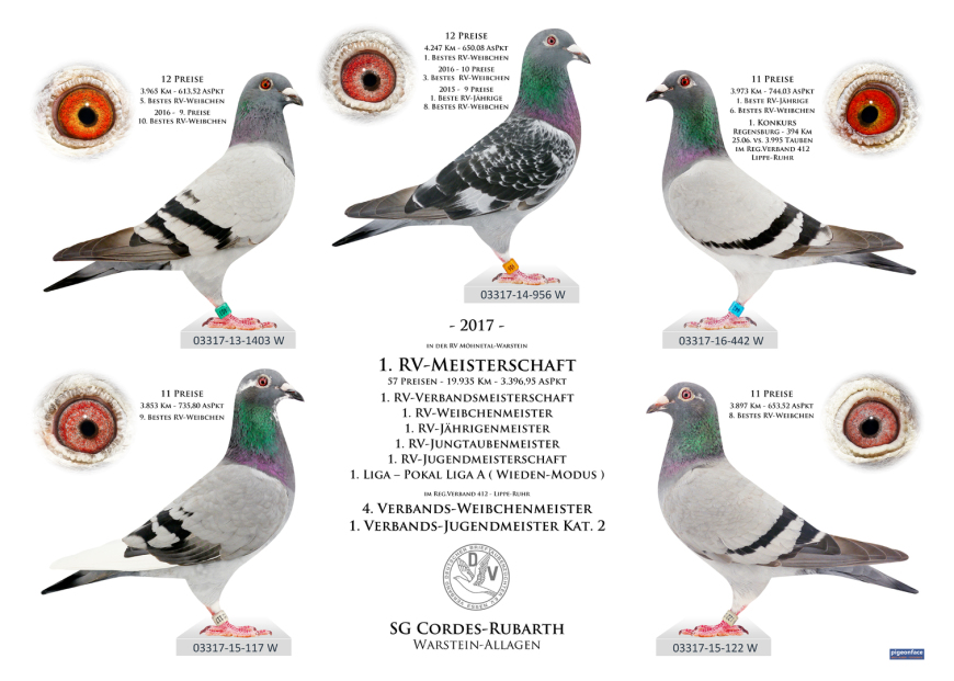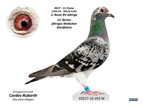 03317-16-293w 12. beste jährige Taube in Westfalen